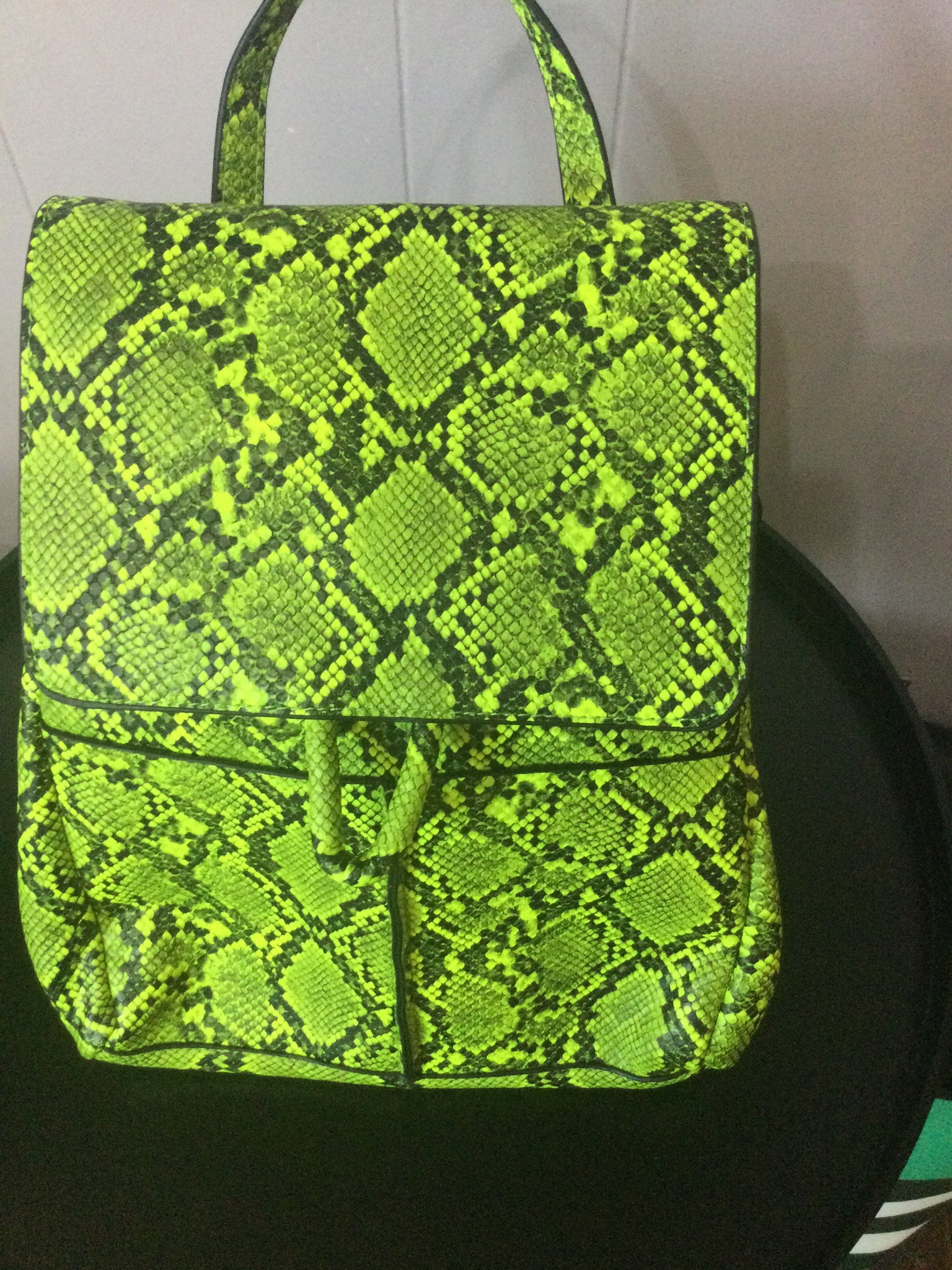 The interior pocket fits up to a 15 inch laptop and the smaller front pocket is great for school supplies and quick grab essentials. Drawstring and Snap closure.